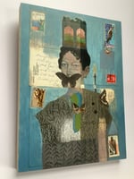Original collage and oil painting on a cradled birch panel.